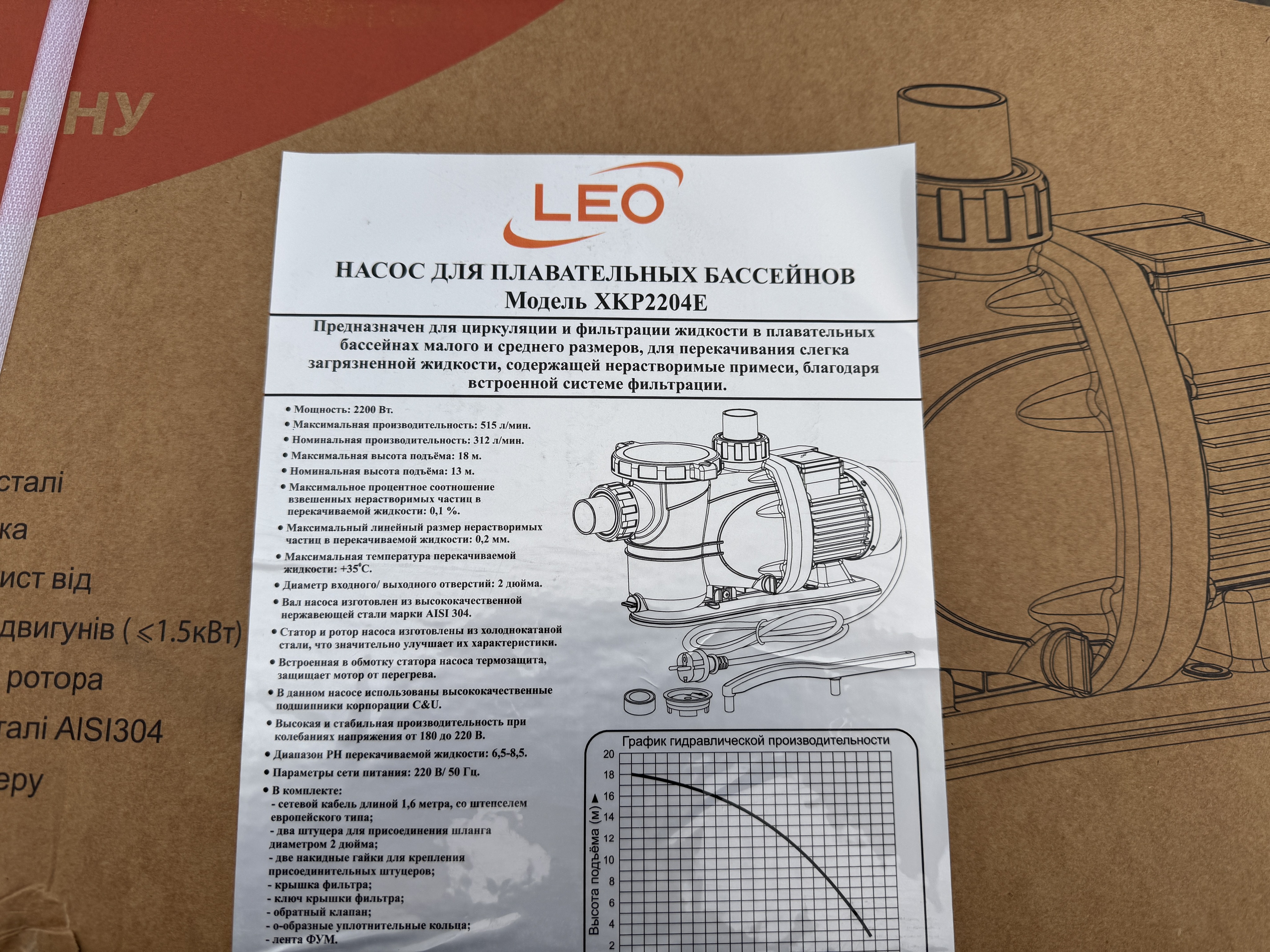 - Напор max (м): 18 м;