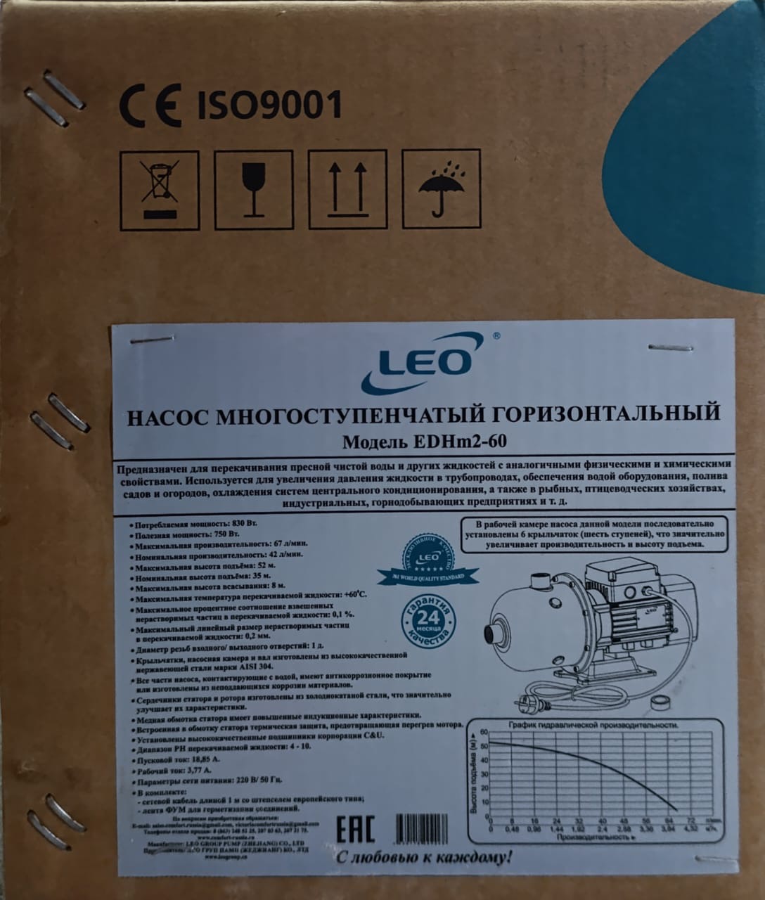 | Насос многоступенчатый горизонтальный "LEO" модель EDHm2-60 |