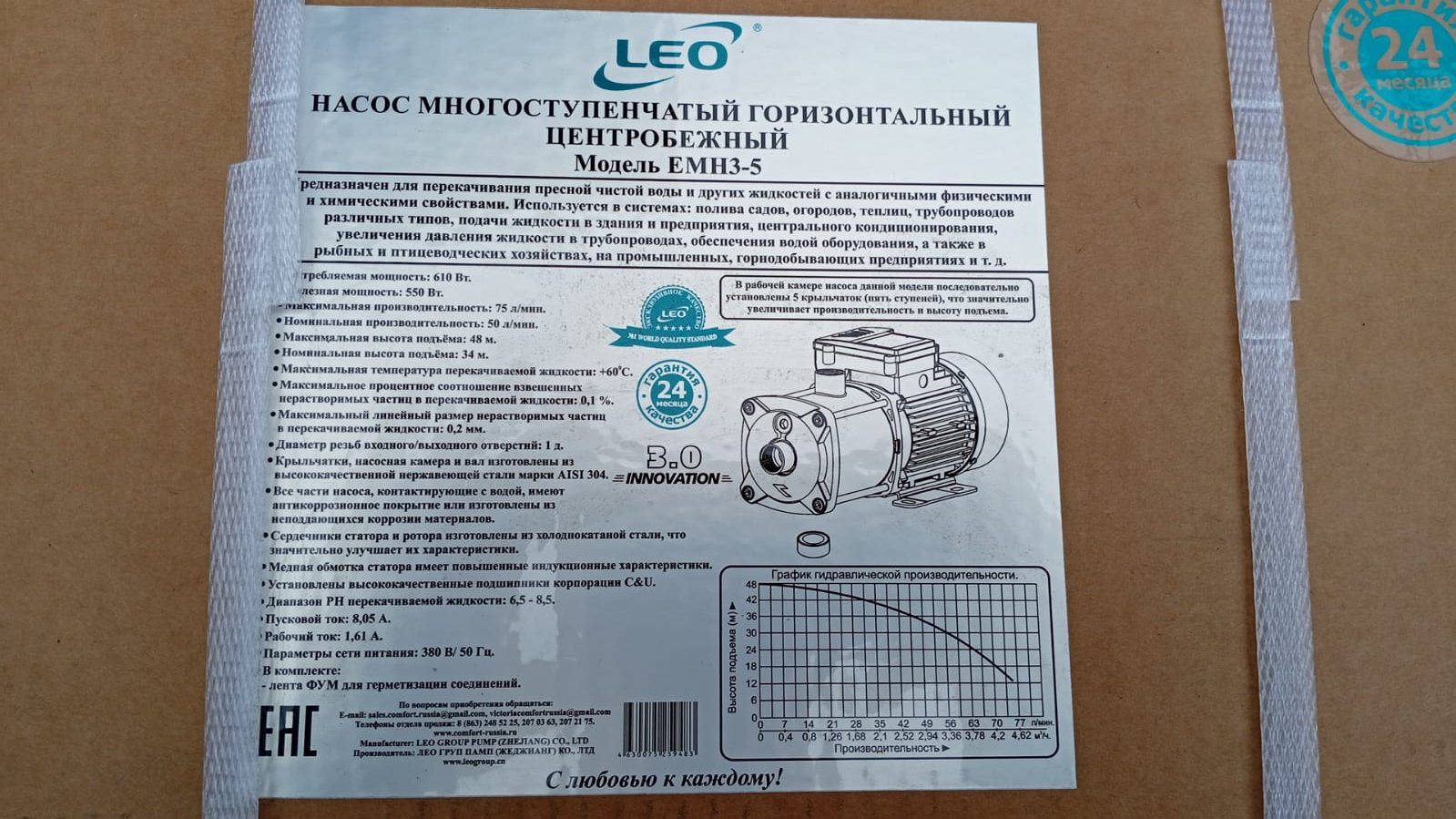 | Насос центробежный многоступенчатый горизонтальный "LEO" модель EMH3-5 (380В) |