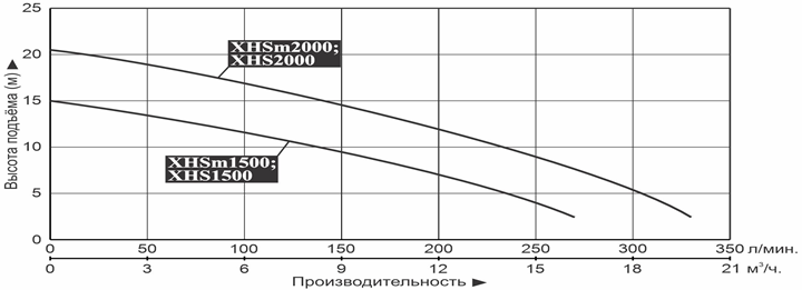 5. Насосы моделей XHSm1500 и XHSm2000 имеют встроенную в обмотку статора термозащиту, предотвращающую перегрев мотора;