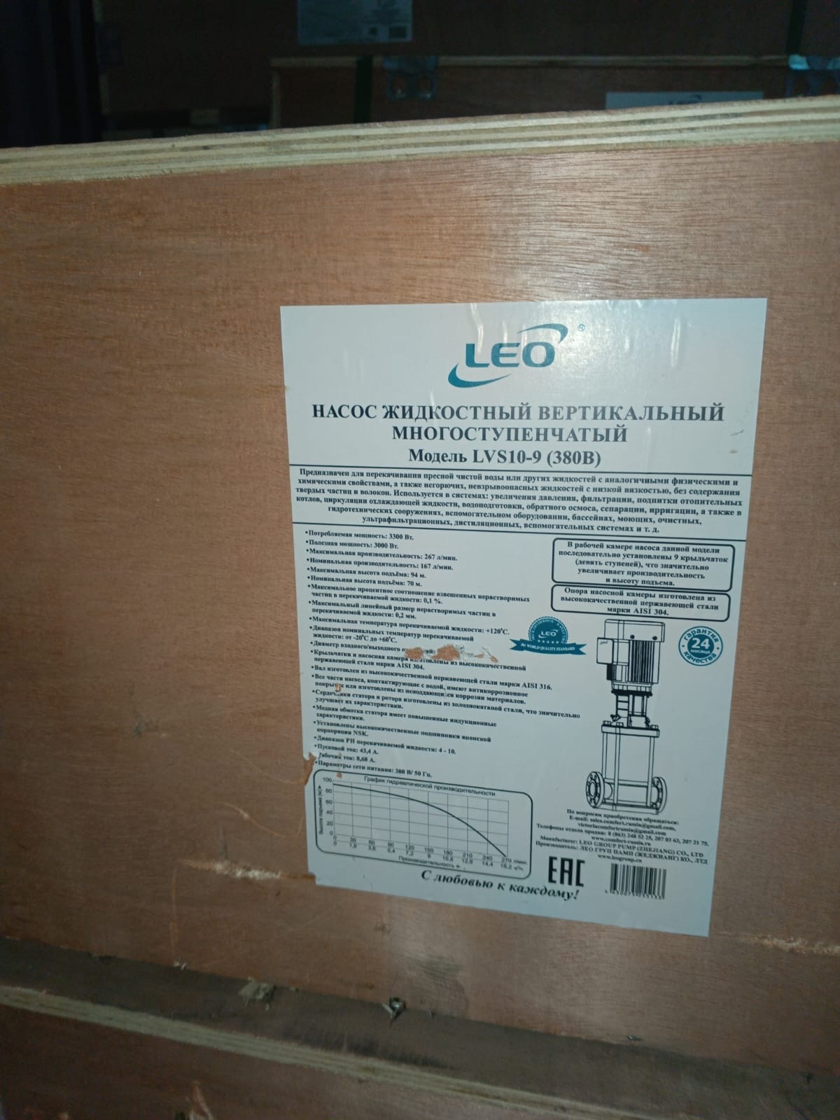 | Насос вертикальный многоступенчатый "LEO" модель LVS10-9 |
