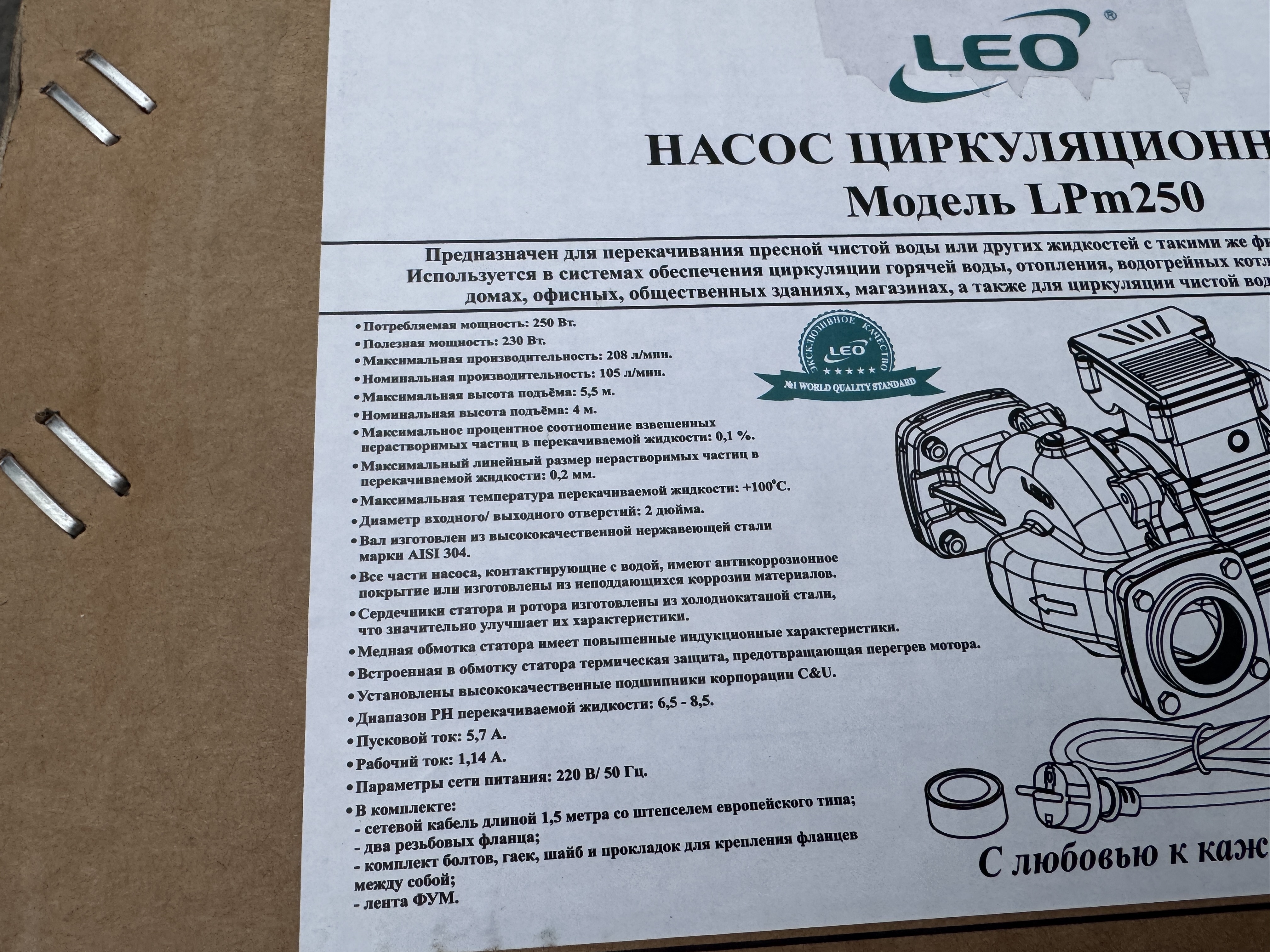 Циркуляционный насос LEO (Лео) LPm250 предназначен для перекачивания воды в небольших системах отопления или водоснабжения. Данная модель оборудована асинхронным двигателем, помещенным в чугунный корпус. Все детали, имеющие соприкосновение с водой, защищены антикоррозийным покрытием.
