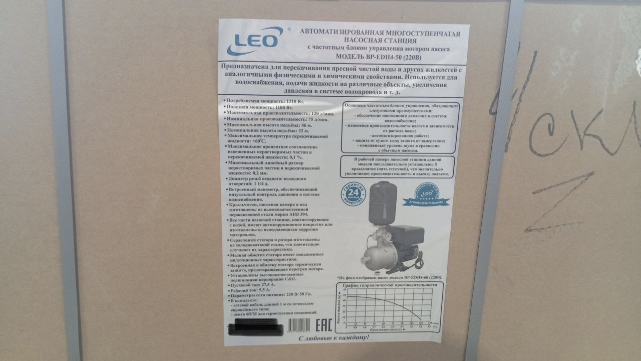 Насосная станция LEO с частотным блоком управления модель BP-EDH4-50 (220В)